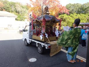 松原町神原地区のお祭りで お神輿の巡行がありました。
