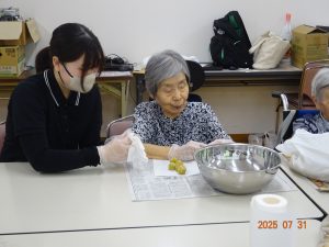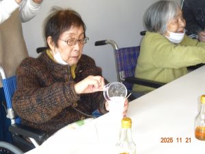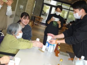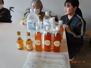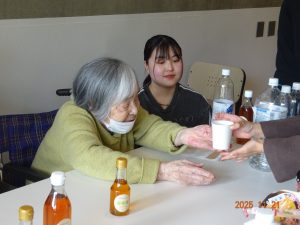 普段 社会とのつながりが希薄になりがちな利用者の方々ですが、この梅ソーダーをその場で作り「どうぞ」と笑顔で主体的に手渡し、
