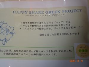 シロップはこの11月に吉備国際大学にできた「KIUB」で 利用者が出向き「フリーカフェ」で「手作り梅ソーダー」を学生対象に振る舞いました。